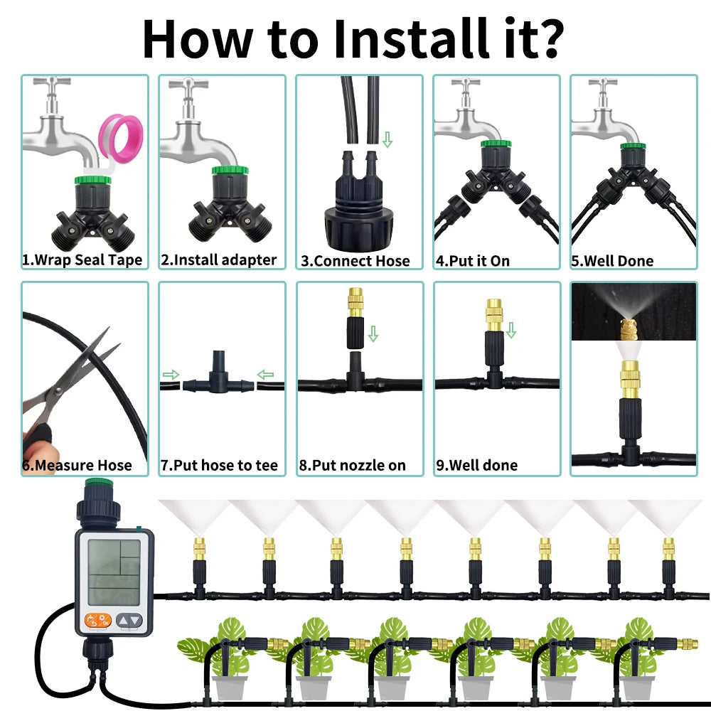 15M-30M Outdoor Misting Garden Irrigation 1/4'' Brass Atomizer Nozzles Hose for Patio/Greenhouse
