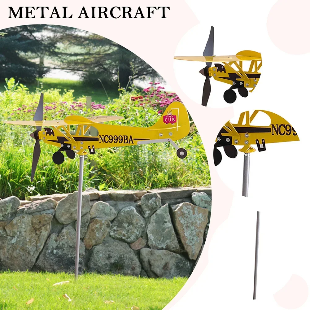 3D Plane Garden Weather Vane Plug Decor Anti-corrosion Metal Airplane Plug-in Windmill Weatherproof Ornaments for Outdoor Garden