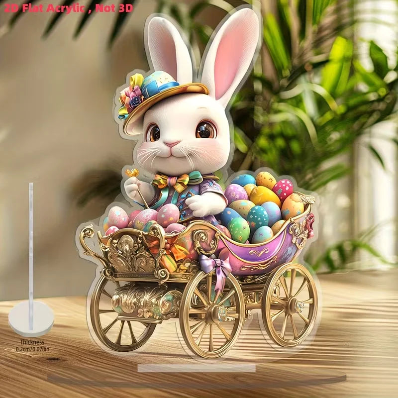 2D flat acrylic, Bohemian style Easter bunny decoration - Easter egg celebration themed desktop ornament - suitable for homes, offices, cafes - suitable for New Year, Valentine's Day, Father's Day, Mother's Day
