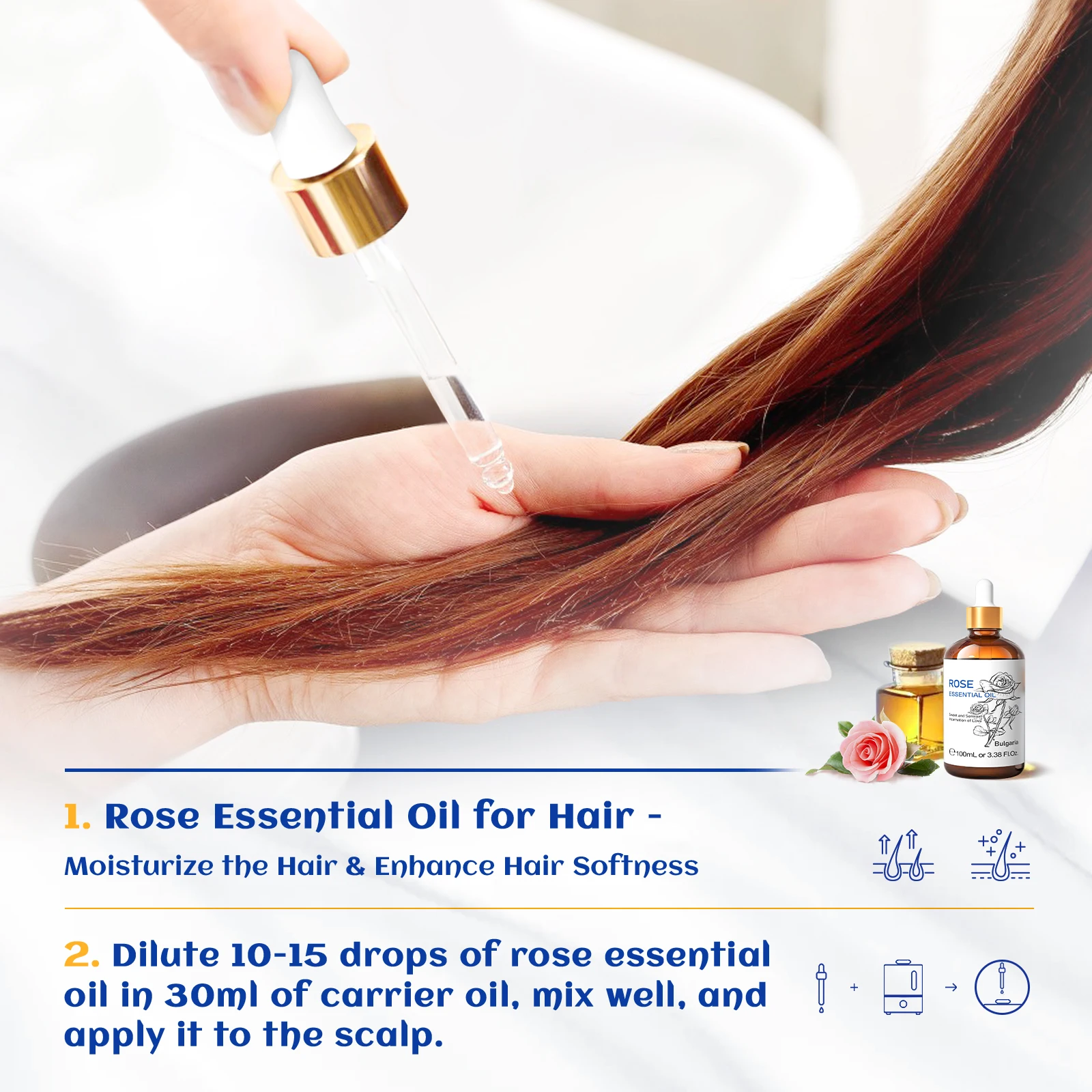 * DILUTION: Rose Essential Oil is highly concentrated, so it should always be diluted before applying it to the skin. Mix it with a carrier oil like coconut oil or almond oil to avoid skin irritation or sensitivity.