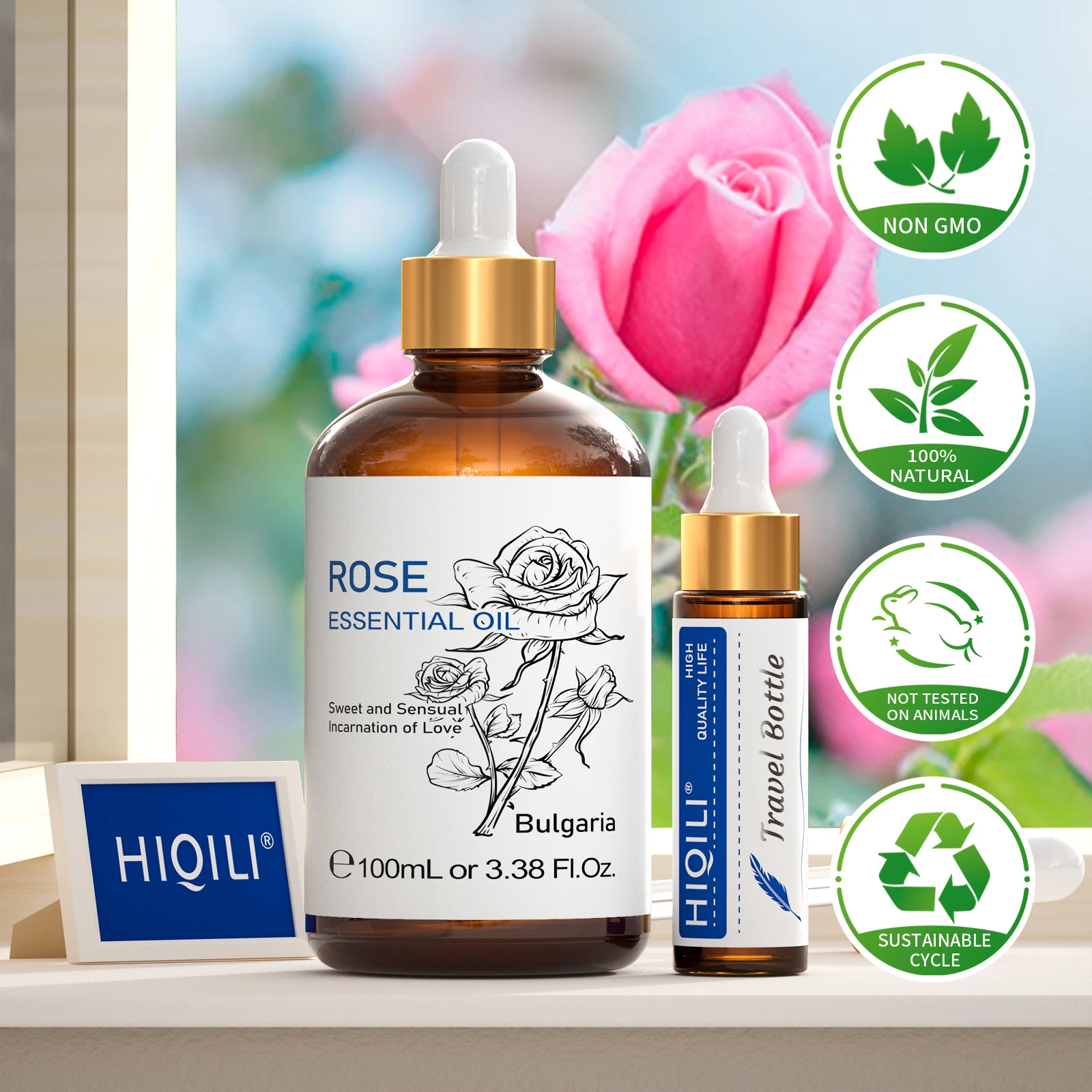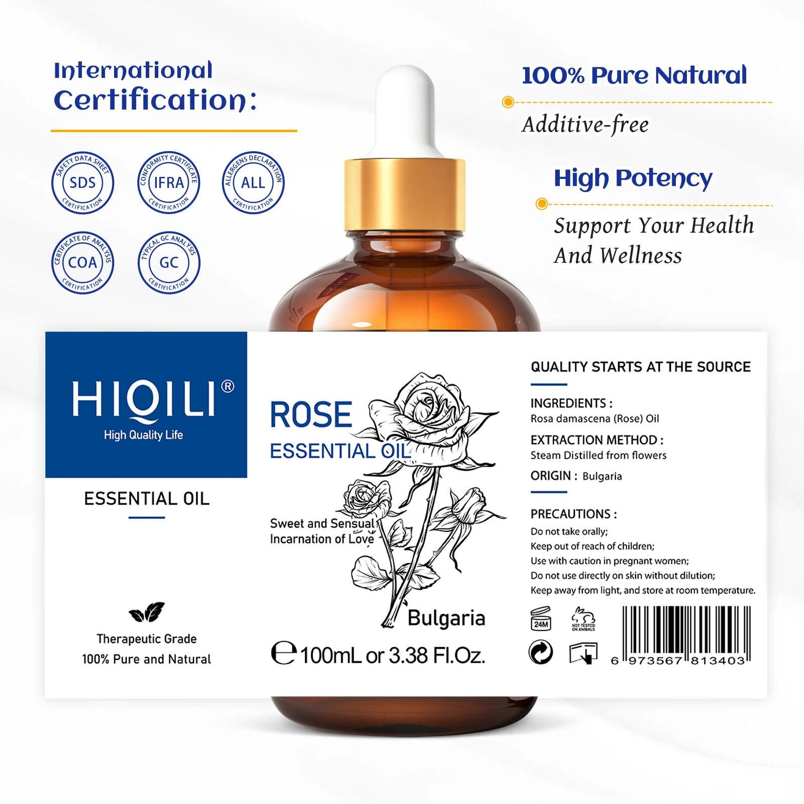 HIQILI Essential Oil Rose Geranium Lavanda Citronela Tea Tree vanille Body Oil Face Skin Care Massage 100ML/3.38fl.oz