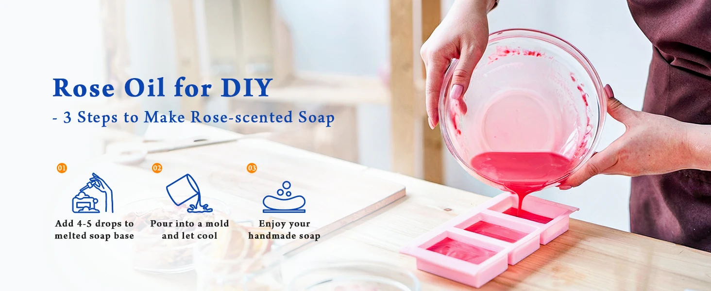 DIY: Add Rose essential oil to perfumes, diffusers, massage oils, cleansers, candles, aromatherapy, lamps, conditioners, shampoos, sprays, laundry detergents, cleansers, body lotions, creams, serums, bath salts, soaps.