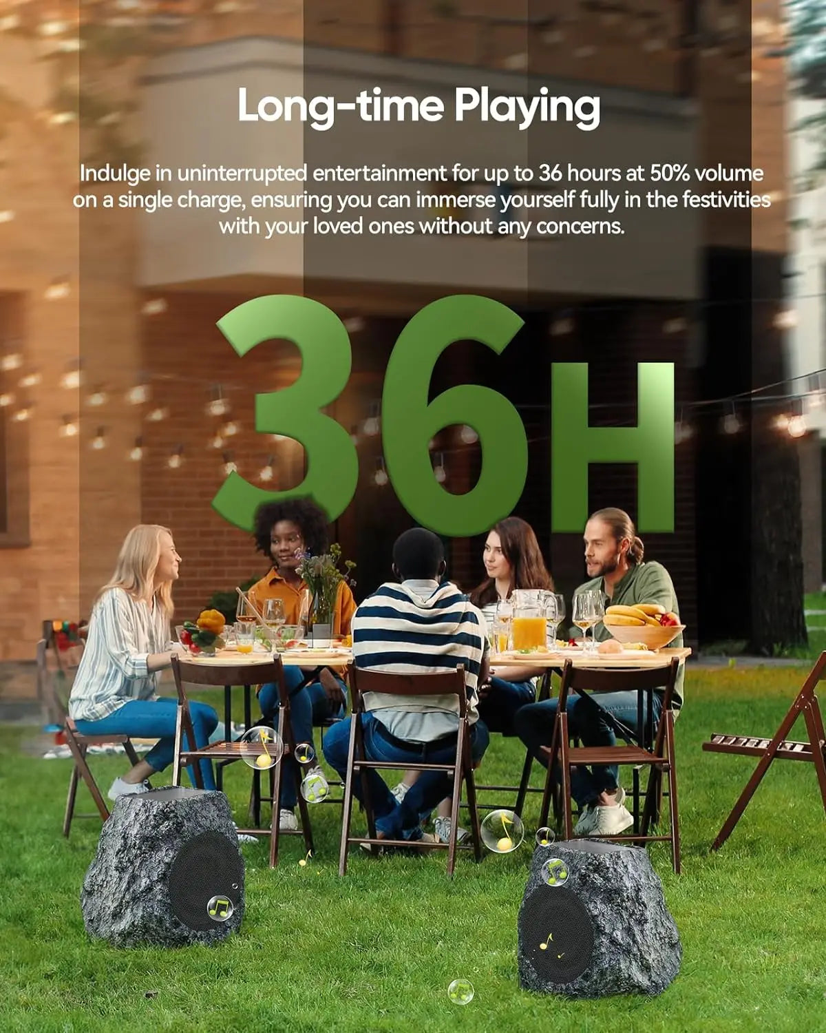 - IPX7 Weather-Resistant & Durable: These weather-resistant rock speakers are designed for year-round use. Rain, snow, or harsh sun, rest assured that they'll perform flawlessly every time you have an outdoor party or gathering. With minimal maintenance, enjoy uninterrupted music for a long time.